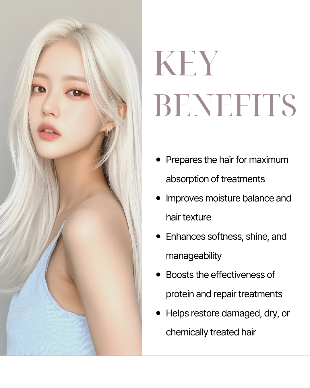 Product features For pre-clinic use, consists of protein and natural moisturizing ingredients